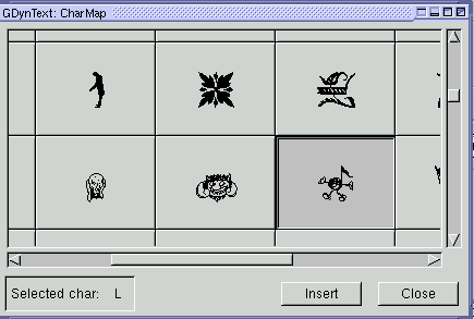 di GDyntext. Nella mappa dei caratteri (charmap) potete vedere tutti i caratteri